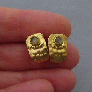 J shaped gray Moonstone half hoop 22k gold studs. Handmade with special texture decorated with unique texture and gray Moonstone.