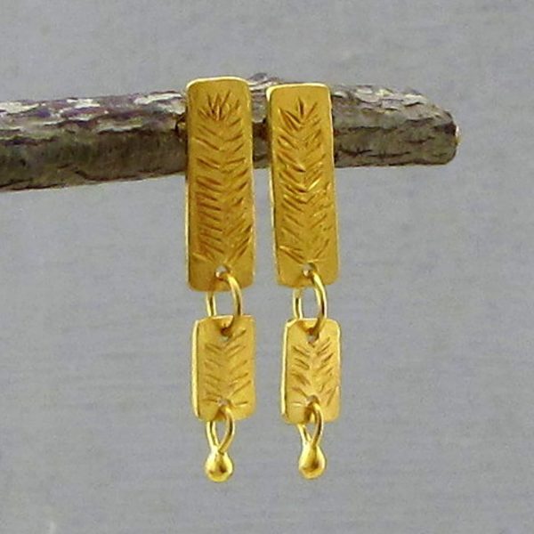 My 22k gold jewelry collection – rectangles dangled 22k gold studs – a stunning handmade, one-of-a-kind 22k gold studs earrings composed of two dangle rectangles, hammered for organic look and unique texture and decorated with dangled gold dot.